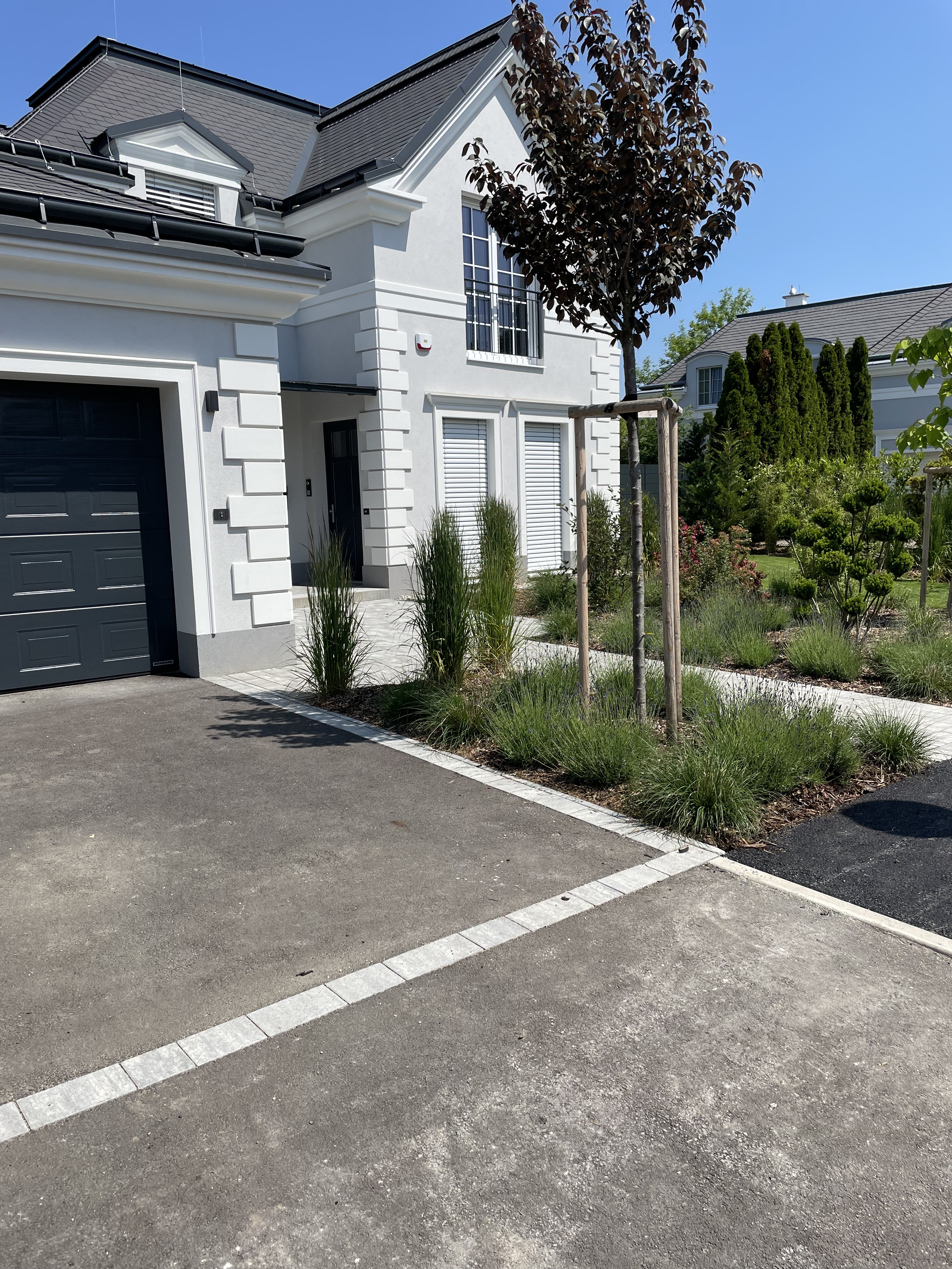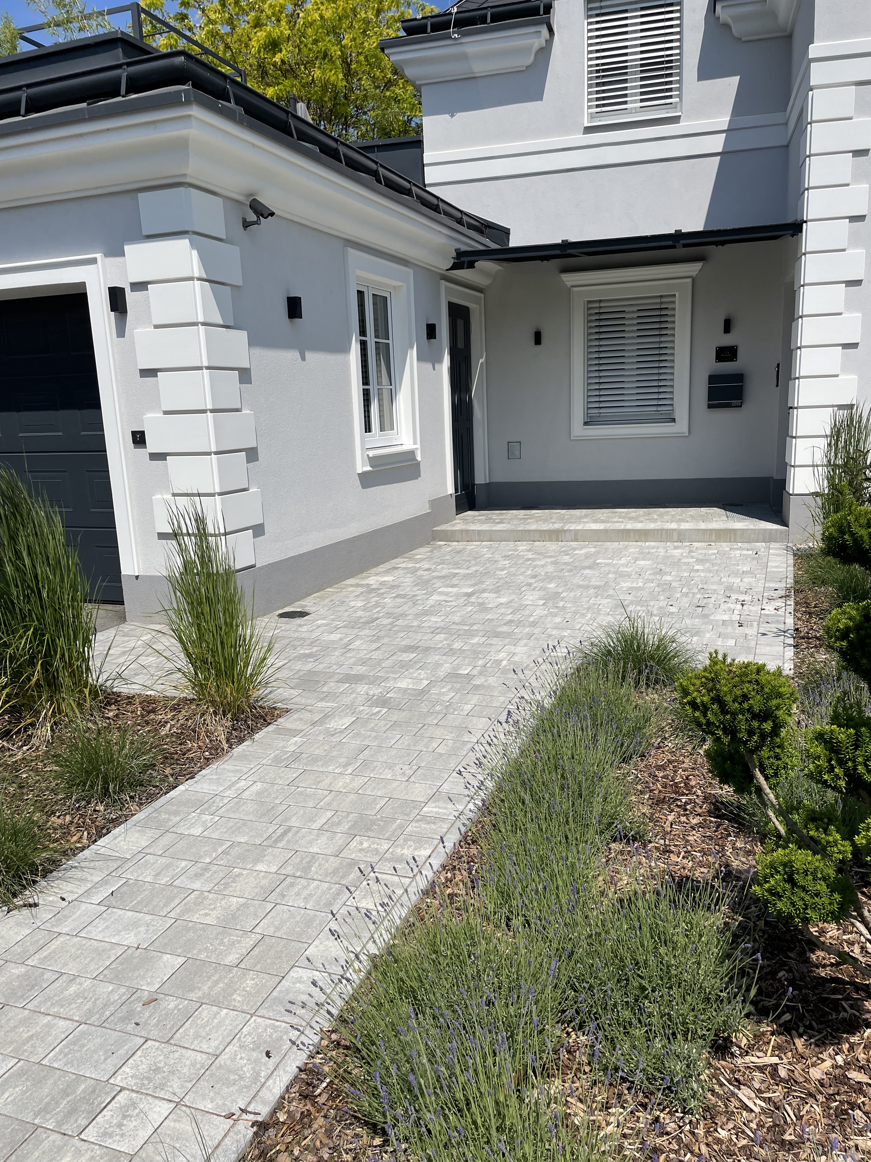 Das Ergebnis: Eine moderne, pflegeleichte und langlebige Außenanlage, die die hochwertige Architektur des Hauses unterstreicht.