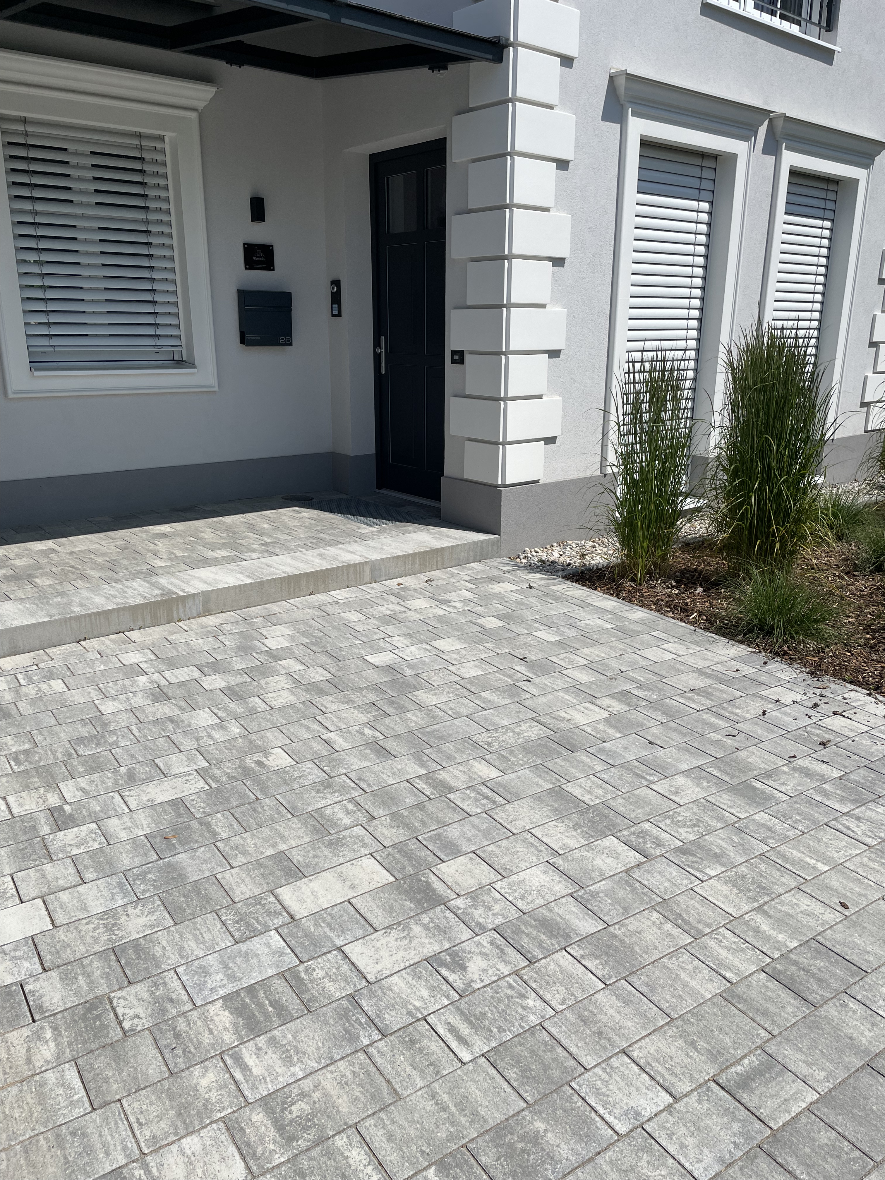 - Großformatige Blockstufen im Eingangsbereich