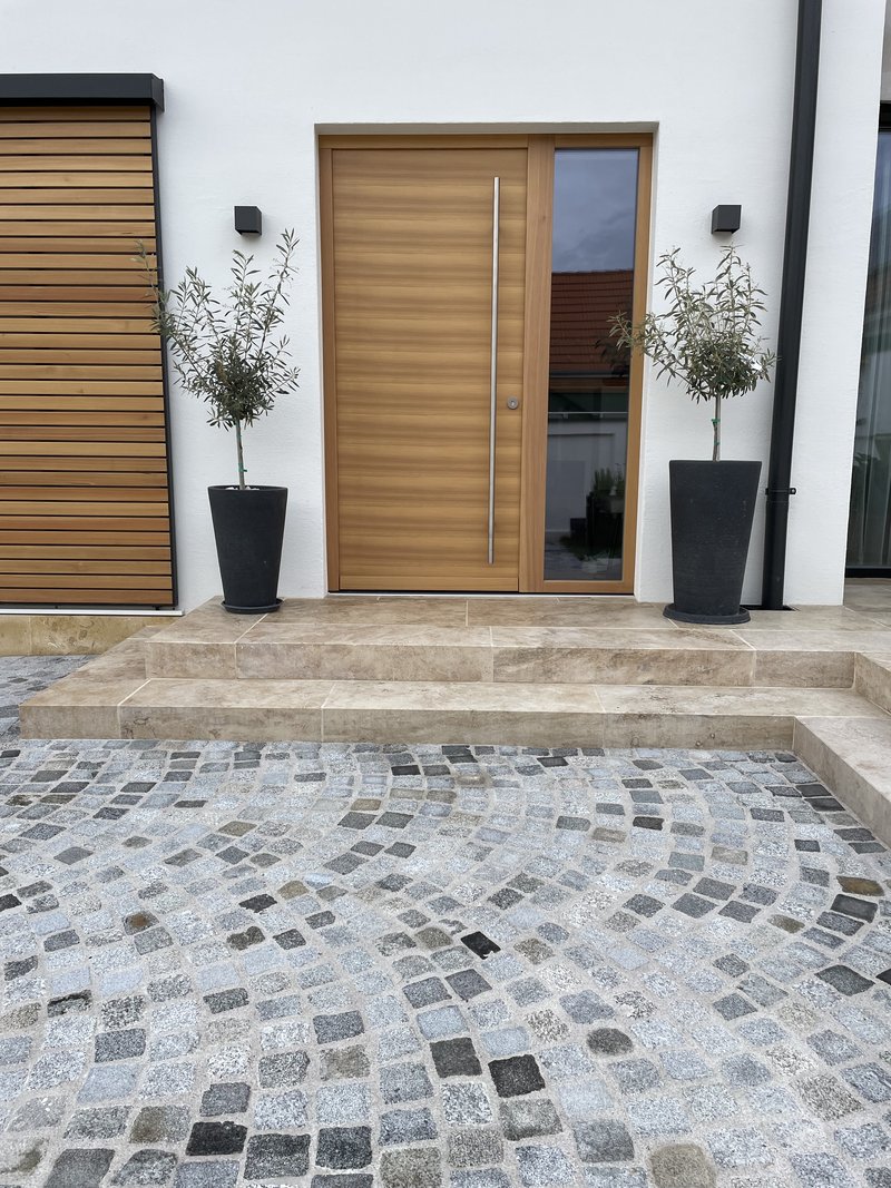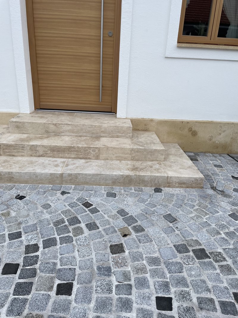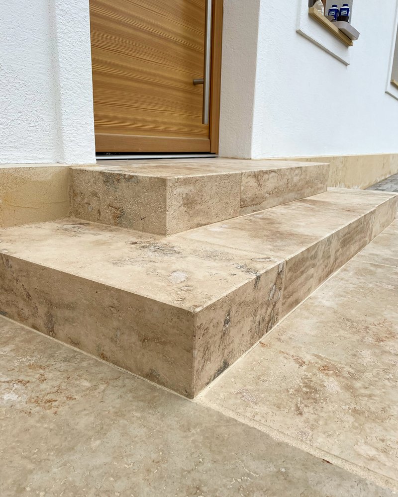 - Eingangsbereich mit Travertinblockstufen
