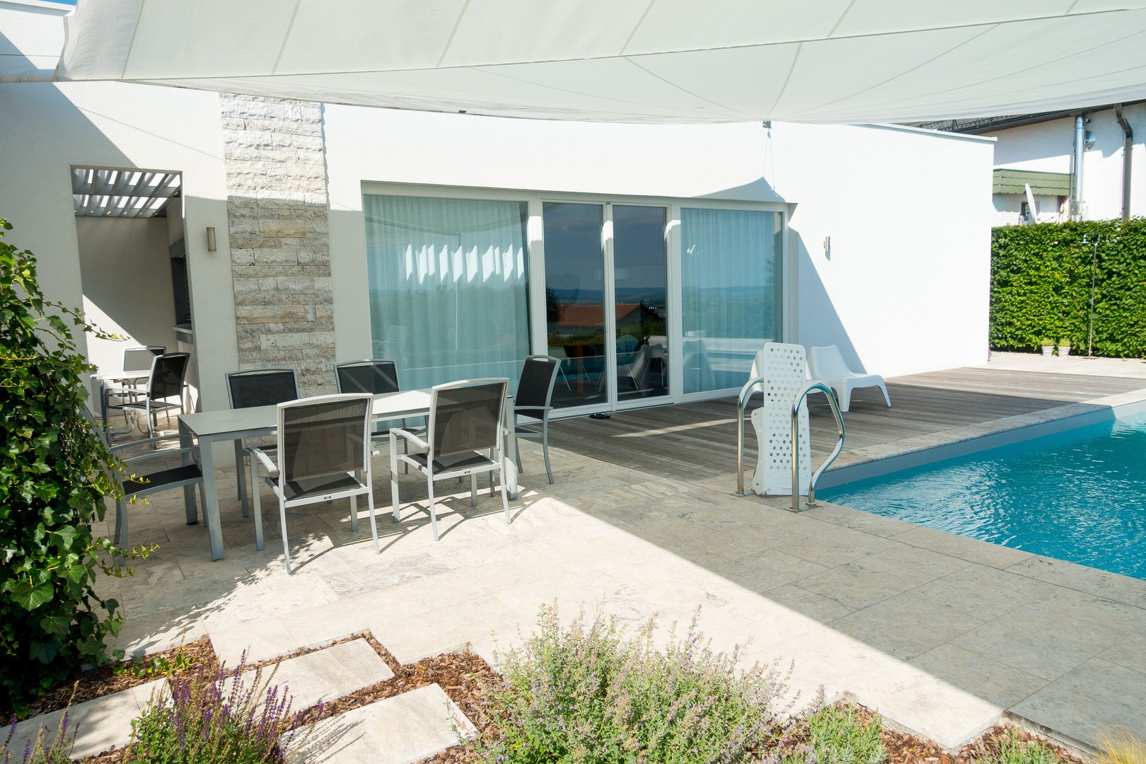 Ein Pool ist immer ein besonderer Blickfang und verwandelt den Außen- oder Innenbereich in eine exklusive Wohlfühloase. Ob als natürlicher Living Pool, klassischer Swimming Pool im Garten oder eleganter Indoor Pool – wir gestalten Wasserwelten, die perfekt zu den individuellen Vorstellungen passen. Dabei achten wir auf ein harmonisches Zusammenspiel von Design, Funktion und Technik, sodass jedes Projekt sowohl optisch überzeugt als auch höchsten Komfort bietet. So entstehen Orte, die zum Entspannen, Erleben und Genießen einladen.